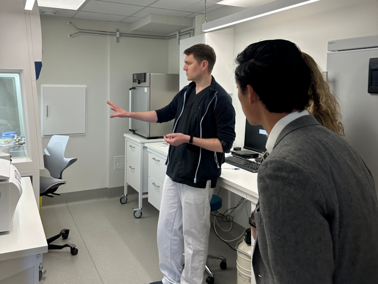 NHO Geneo på besøk hos Medicus Oslo. Fra venstre: Steven Mansell, Embryolog, PhD og lokal laboratorieleder ved Medicus Oslo, Karita Bekkemellem, administerende direktør i NHO Geneo, og Martin Langaas, fagdirektør i Helse og velferd. Foto: Emma Egedal Nilsen (NHO Geneo).