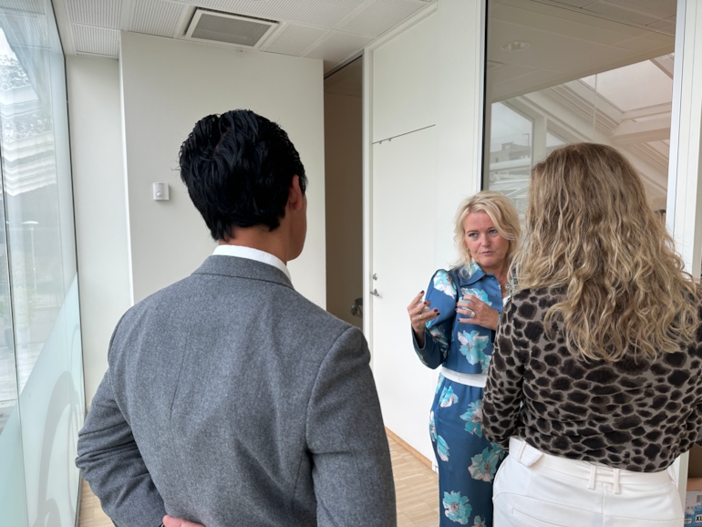 NHO Geneo, med Karita Bekkemellem, administrerende direktør i NHO Geneo, og Martin Langaas, fagdirektør i Helse og velferd, møter henne på Legevakt Vests lokaler på Lilleaker i Oslo.
